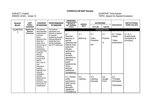 Curriculum Map Sample – Curriculum mapping is the process through which faculty identify how See the guides in the Resources section below for more examples. . Mapping and reviewing each curriculum allows us to keep all information relevant and current whilst ensuring that our partners remain at the forefront of curricular innovation. We bring to our .
